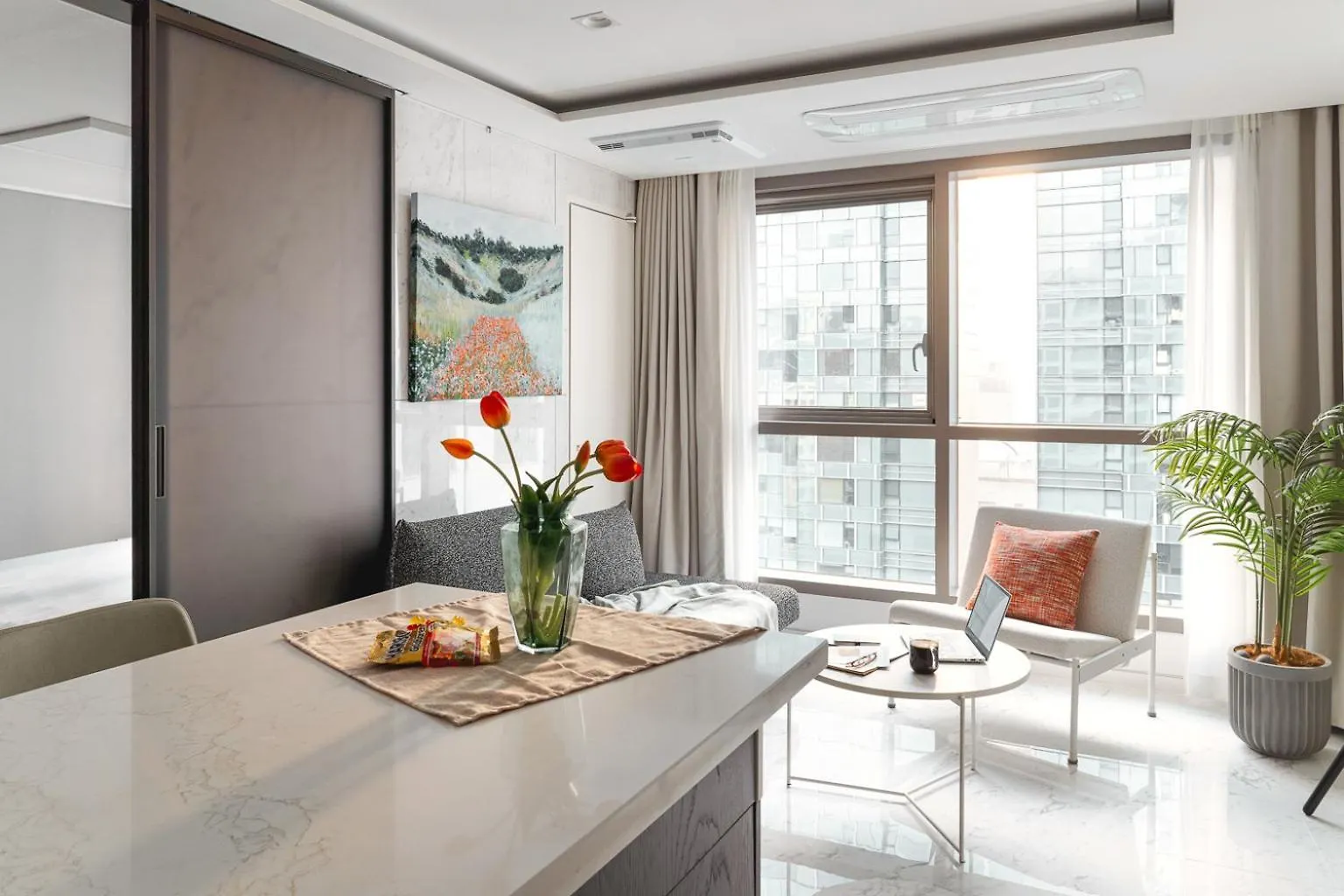 Amueblado con un sofá y un escritorio y climatizador, el Le Collective Seocho Atelier Apartamento ofrece comodidades modernas. El alojamiento también está equipado con TV de pantalla plana con canales vía satélite y TV con múltiples canales, y elementos de seguridad como detectores de humo. El cuarto de baño está provisto de bidé, inodoro y bañera, además de secador de pelo y toallas.